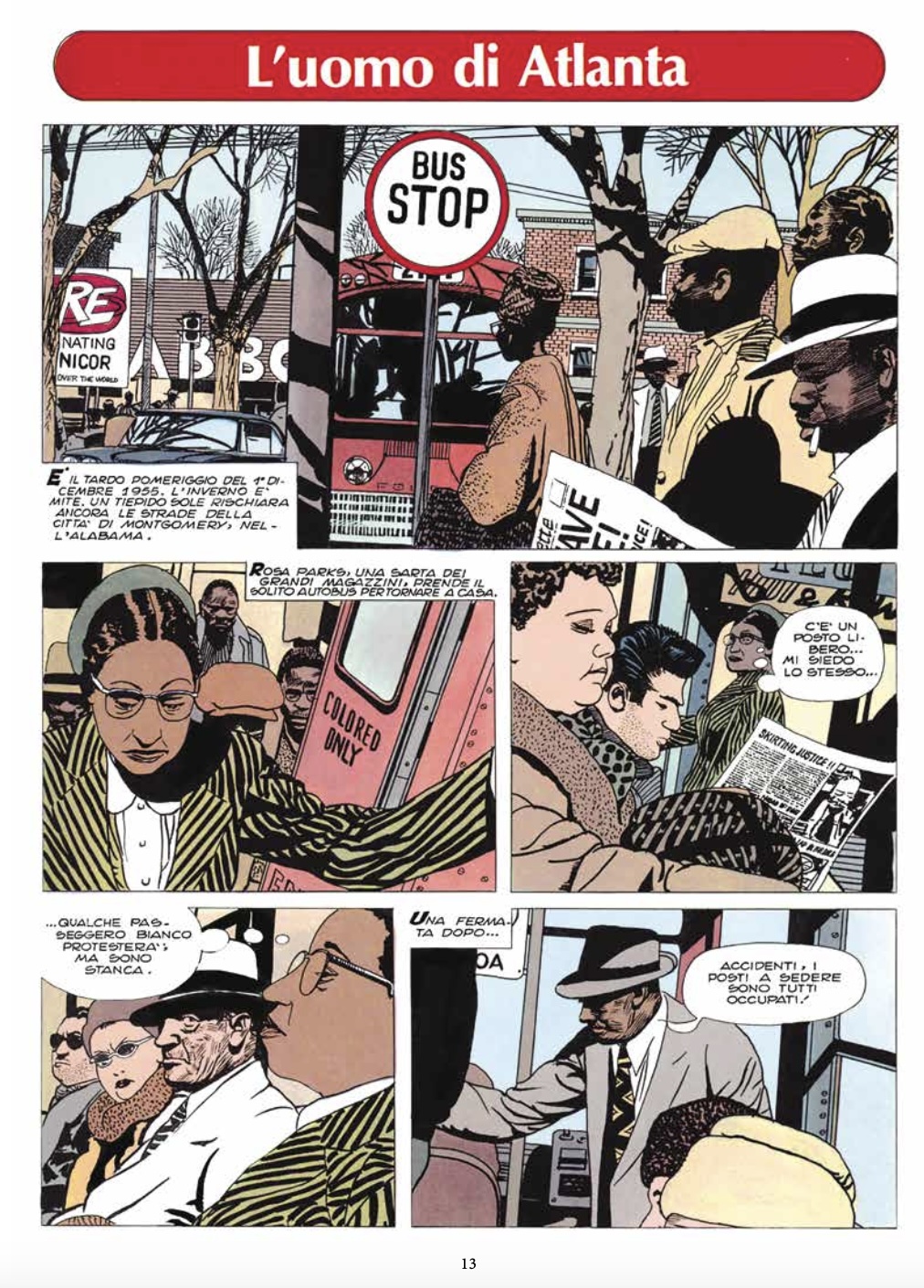 Dalle pagine di riviste e pubblicazioni rarissime degli anni Ottanta e Novanta, nasce questa preziosa antologia che riunisce le storie brevi con cui Attilio Micheluzzi ha scolpito in immagini vite esemplari: Martin Luther King, Gandhi, Anna Frank, Florence Nightingale, Salvatore Giuliano e Salvo D’Acquisto. Restaurate da Agnese Micheluzzi, le tavole rivelano tutta la modernità di un segno nervoso e raffinato, capace di far vibrare la carta come pellicola. A completare l’opera, i testi curati da altri due colossi quali Roudolph e Mino Milani, che ne esaltano il vigore narrativo con la loro inconfondibile penna. Un volume indispensabile per riscoprire la lezione grafica di uno dei grandi maestri del fumetto d’autore italiano.