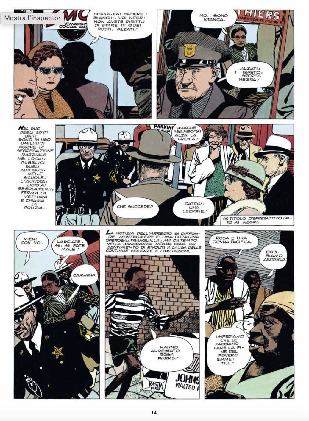 Il volume Personaggi famosi arricchisce la collana di Edizioni NPE dedicata ad Attilio Micheluzzi offrendo un arco cronologico completo: si parte dalle tavole in bianco e nero de “L’uomo di Atlanta” del 1982 e si chiude con il denso trittico su Salvo D’Acquisto comparso su «Il Giornalino» nel marzo 1990. Nel mezzo scorrono la marcia del sale di Gandhi, i ghetti di Harlem, la luce soffocata nell’attico di Anna Frank, le notti in corsia di Florence Nightingale e la parabola controversa di Salvatore Giuliano: frammenti di Storia universale che Micheluzzi traduce in tagli quasi cinematografici, contrasti di chiaroscuro e una “regia del silenzio” rara nel fumetto popolare dell’epoca. Le tavole, restaurate e ricolorate da Agnese Micheluzzi, restituiscono nitidezza ai neri e delicate trasparenze alle campiture, permettendo di cogliere la raffinatezza prospettica dell’autore. Chi già ama Micheluzzi ritroverà lo slancio architettonico dei suoi set grafici; chi lo incontra per la prima volta scoprirà un maestro capace di influenzare generazioni successive, senza mai sacrificare la forza narrativa delle vicende reali che sceglie di raccontare.